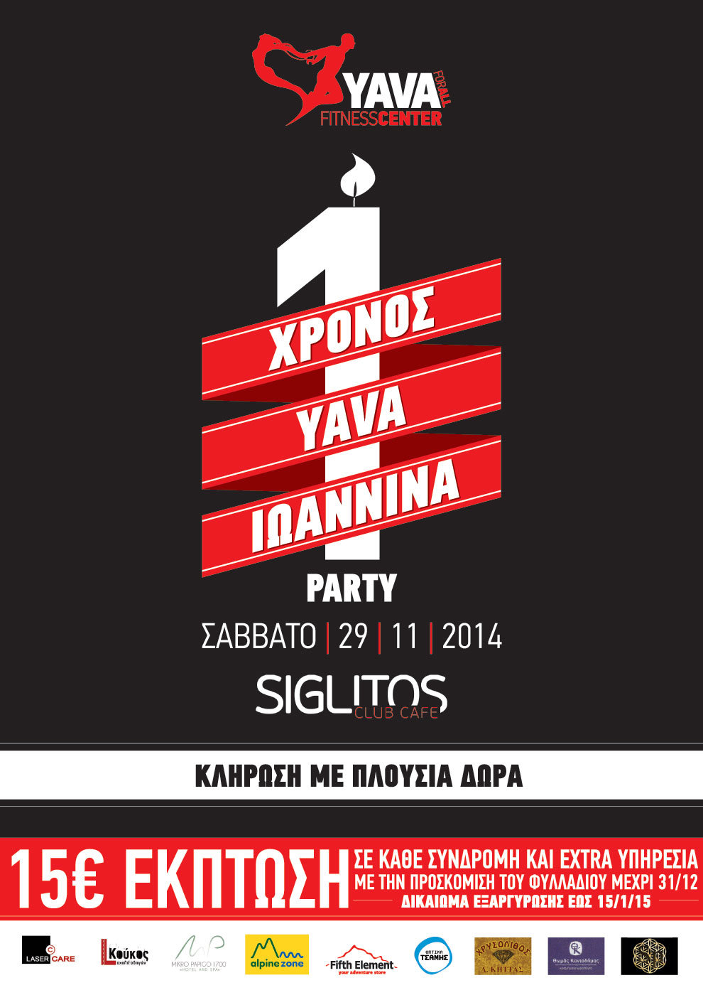 Μεγάλη κλήρωση με πολλά πλούσια δώρα θα πραγματοποιηθεί στις 30/11/2014 στο γυμναστήριο Yava Fitness Center Ιωαννίνων και ώρα 17:30!