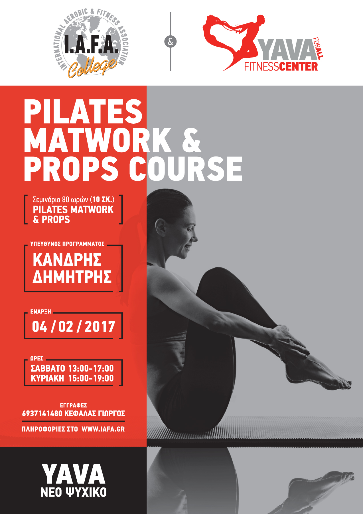 Το Yava Νέου Ψυχικού σε συνεργασία με το IAFA College σε προσκαλεί σε ένα σεμινάριο 80 ωρών (10 Σαββατοκύριακα) για την εκπαίδευσή σου πάνω στην μέθοδο εκγύμνασης του pilates.